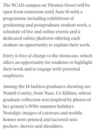 Irish Independent article written by Bairbre Power for NCADWorks 2023